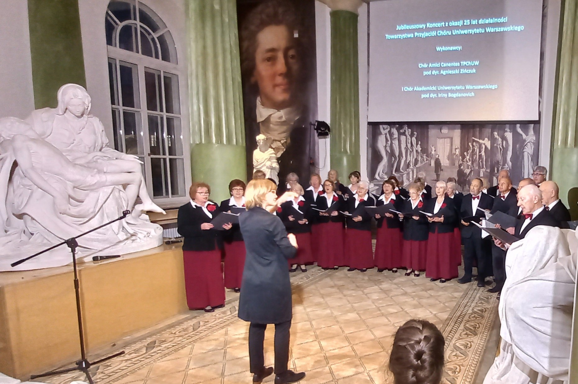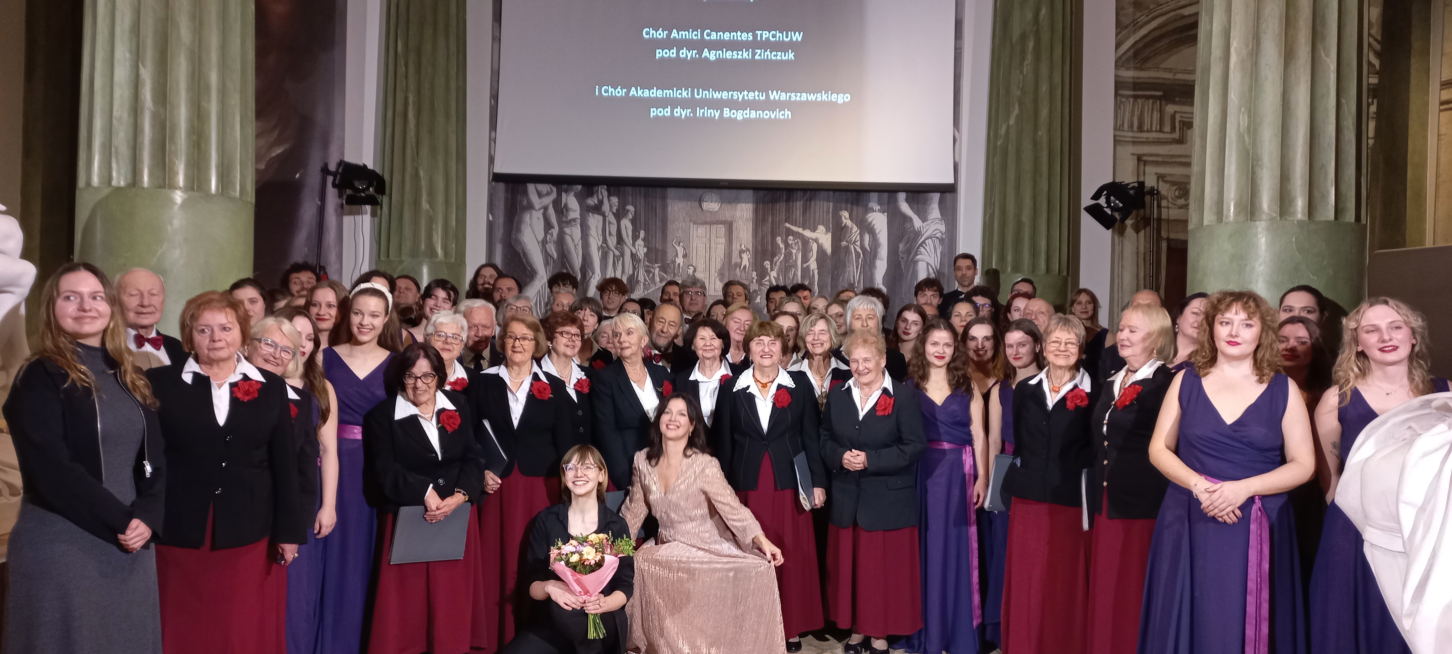 W Kościele Wszystkich Świętych przy pl. Grzybowskim w Warszawie odbył się wspaniały koncert jubileuszowy Chóru Akademickiego UW, na który przybyła liczna grupa członków TPChUW i chórzystów Amici Canentes. Chór pod dyrekcją Iriny Bogdanovich wraz z Płocką Orkiestrą Symfoniczną im. W. Lutosławskiego wykonał Nieszpory KV 339 W. A. Mozarta i Glorię FP 177 F. Poulenca. Jako byli chórzyści tego znakomitego zespołu jesteśmy dumni z osiągnięć naszych młodych Przyjaciół i razem z nimi przeżywamy ten szczególny jubileusz. Składamy serdeczne gratulacje.