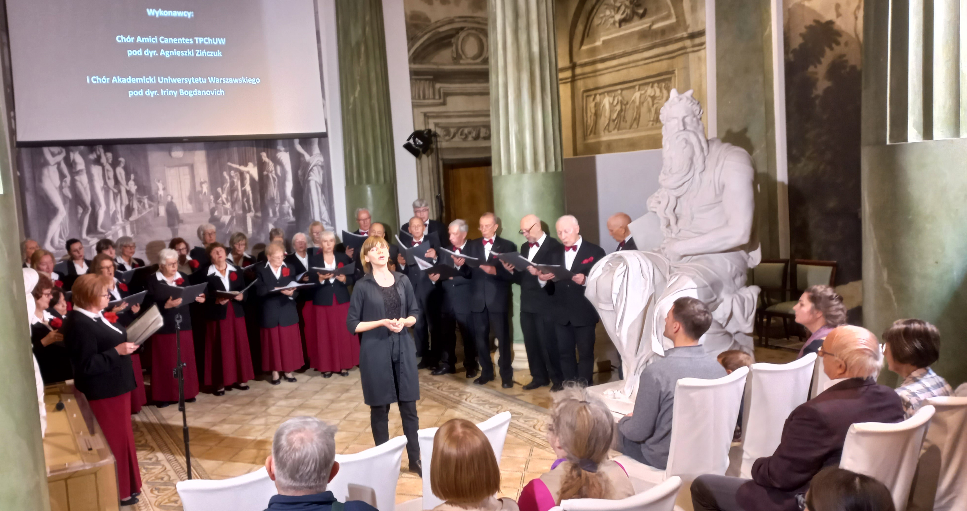 Koncert wykonali: Chór Akademicki Uniwersytetu Warszawskiego pod dyr. Iriny Bogdanovich i zespół Towarzystwa Przyjaciół Chóru UW – Chór Amici Canentes pod dyr. Agnieszki Zińczuk. Koncert zakończyło wspólne wykonanie „Maków” Stanisława Niewiadomskiego, łączących wszystkie pokolenia chórzystów.
