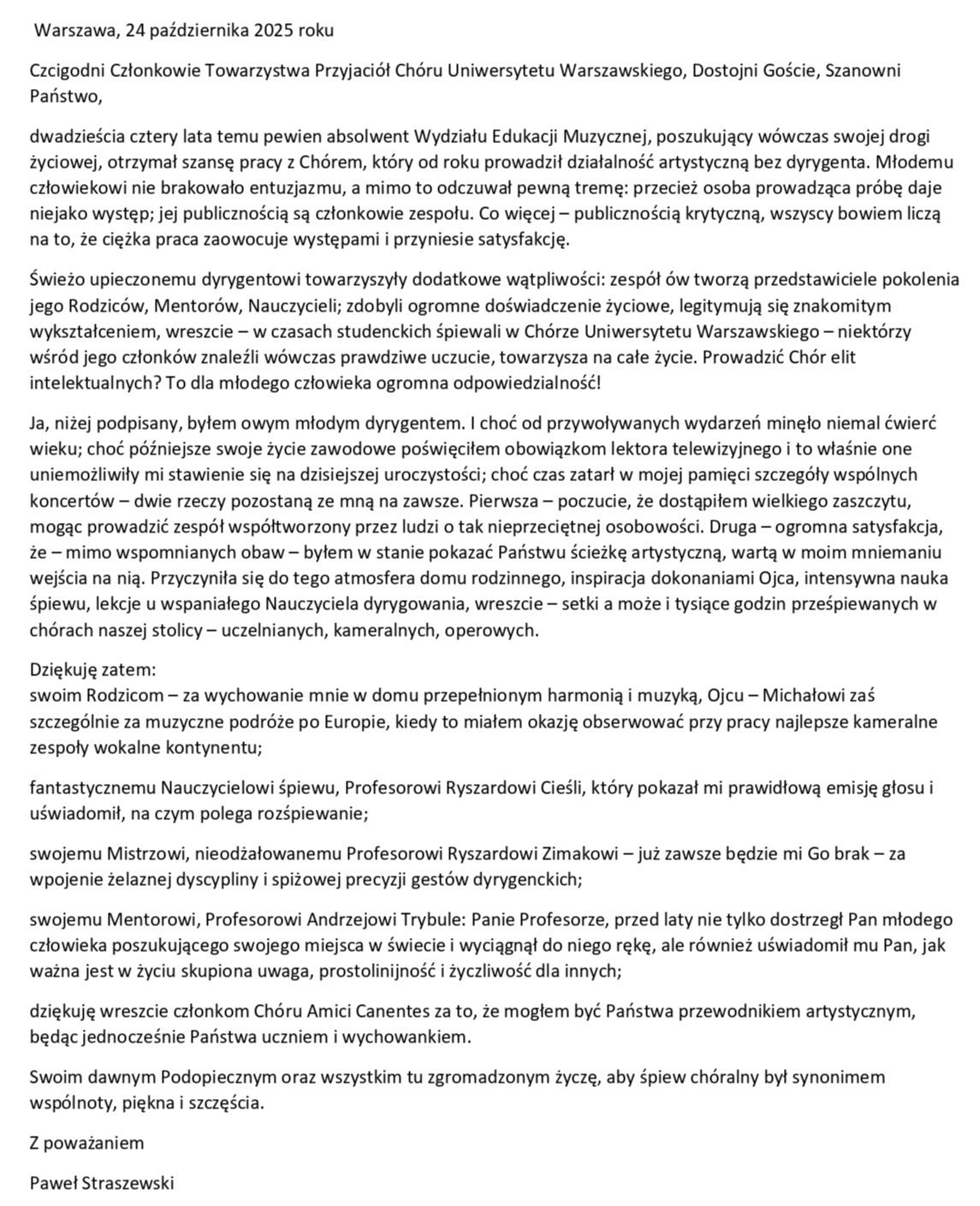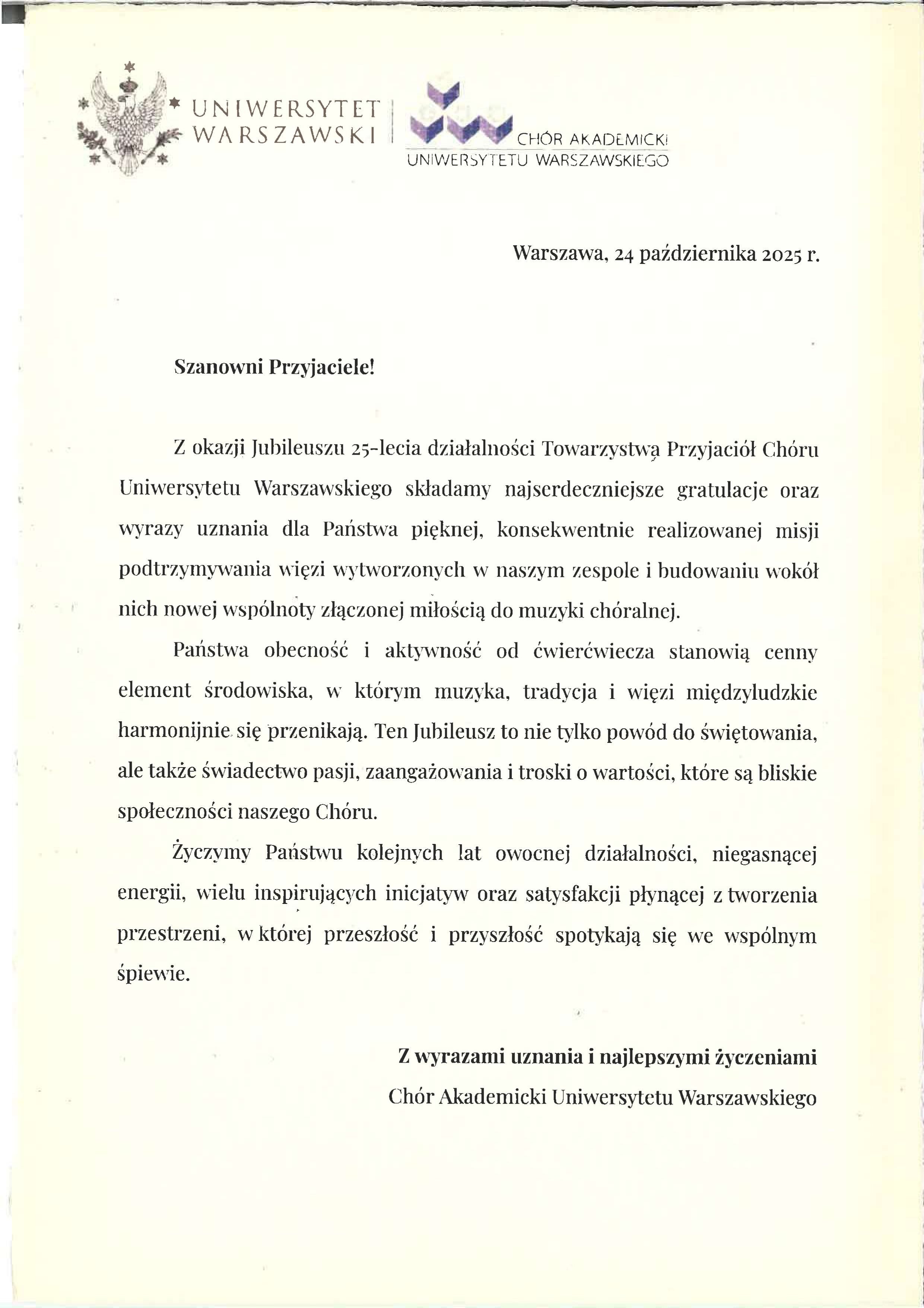 Jubileuszowy Koncert z okazji 25 lat TPChUW - 24 października 2025