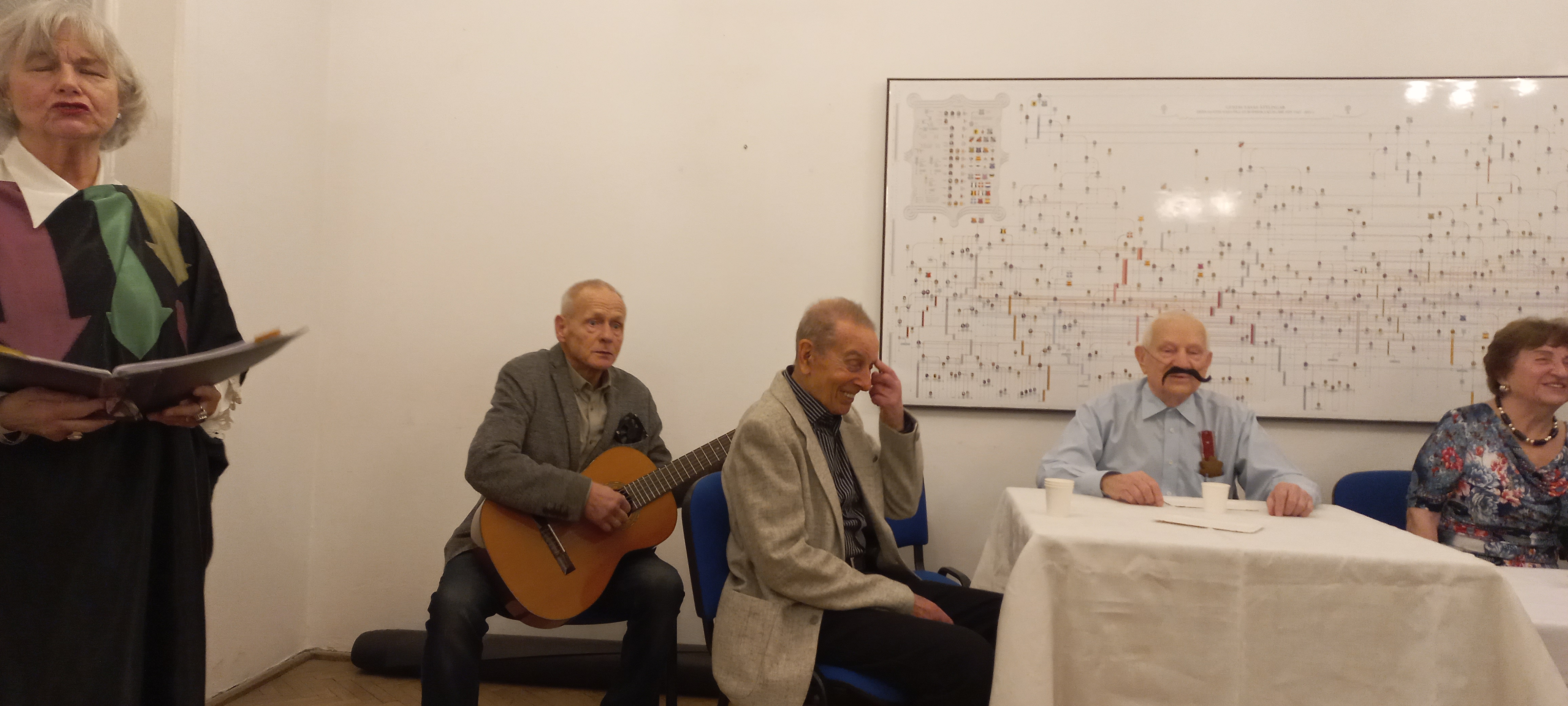 Biesiadna część spotkania była urozmaicona wspólnymi śpiewami znanego repertuaru rozrywkowego, począwszy od „Maków”, „Jaworiny” i „Buzuki”. Nie mogło zabraknąć też madrygałów staropolskich takich jak „Dobranoc ci Anusieńku” i „Skarżęć się matusiu moja”.